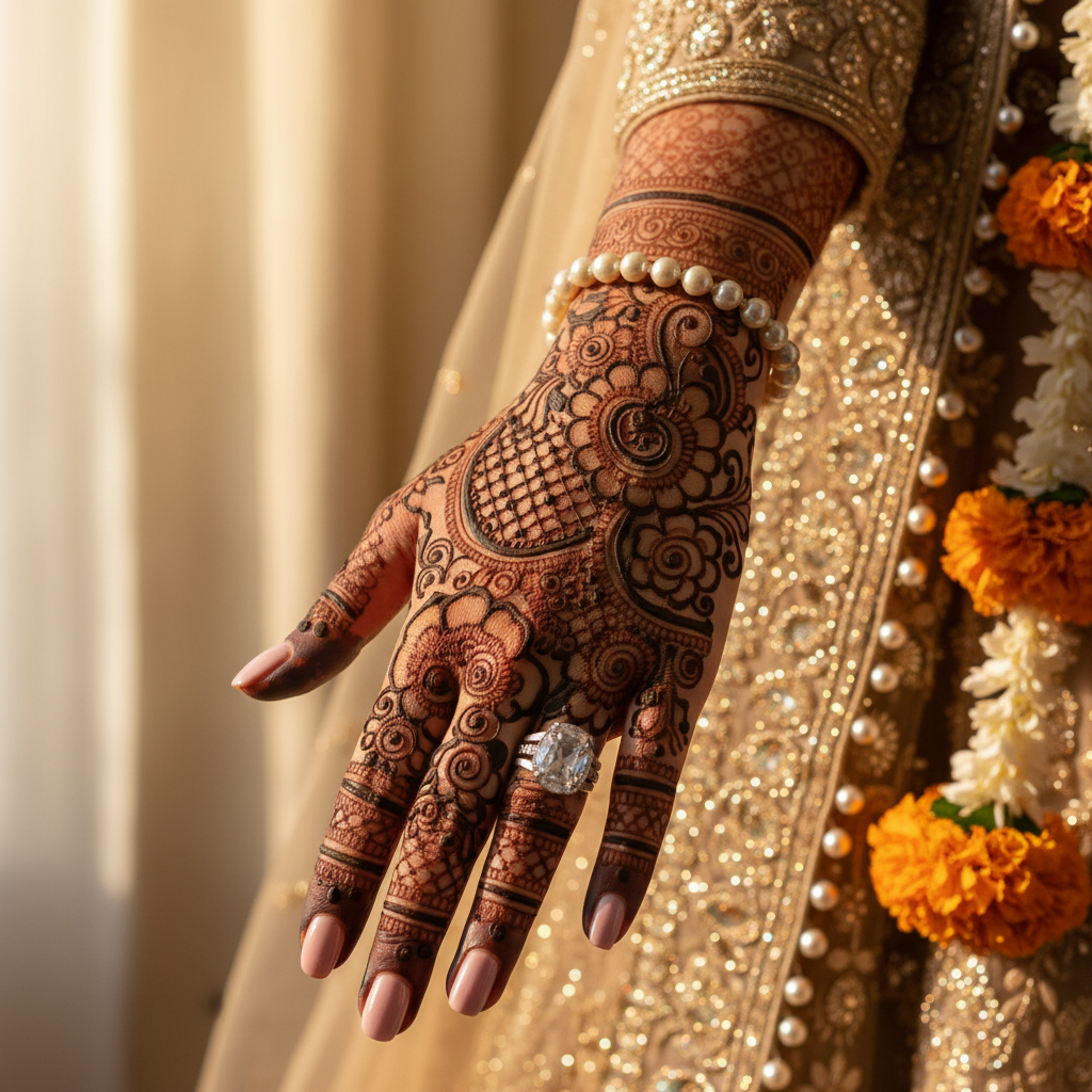 Tattoo-style mehndi is another creative approach, with small meaningful symbols placed strategically to create a unique identity.