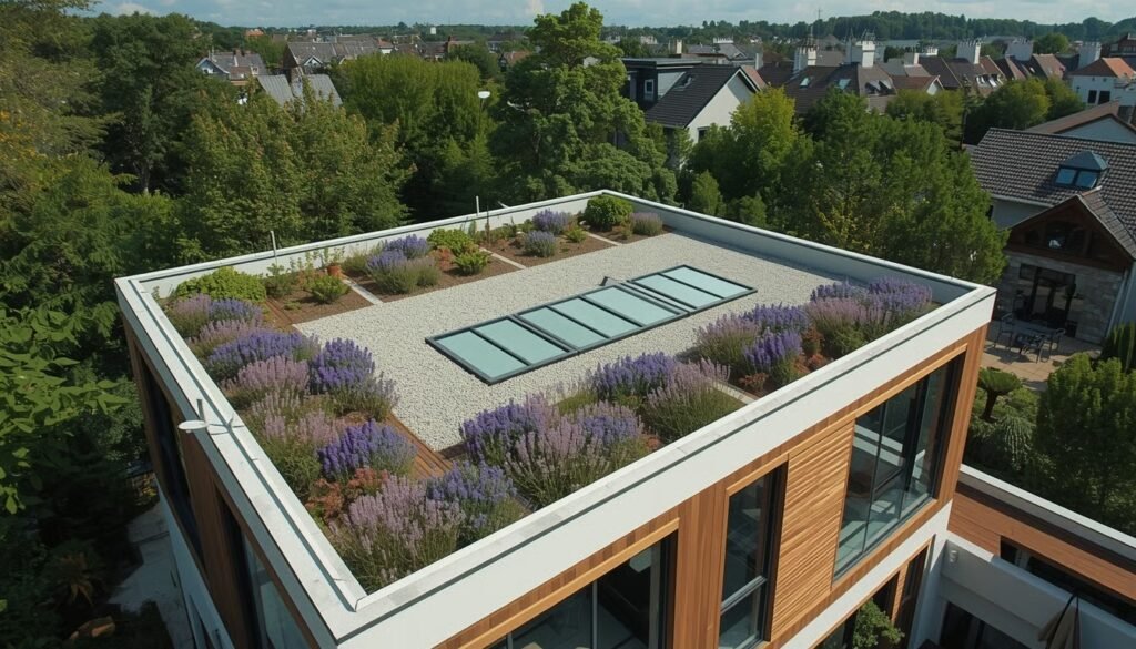 Modern terrace roof designs use cool roofing technoly, which reflects sunlight to reduce heat adsorption. This keeps the terrace and interior temperature balanced for enhanced comfort. Green roofs made with planted vegetations. Also improve insulation and air quality.